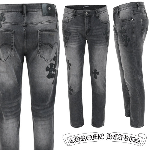 • CHROME HEARTS 크롬하츠 멀티 레더 패치 흑청 슬림 일자진