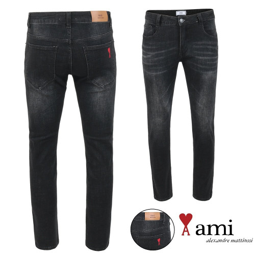 • AMI 아미 드 꾀흐 흑청 워싱 슬림진