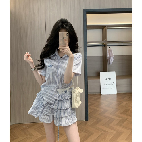 MIUMIU 미우미우 스트라이프 셔츠 & 스커트 세트 2COLOR