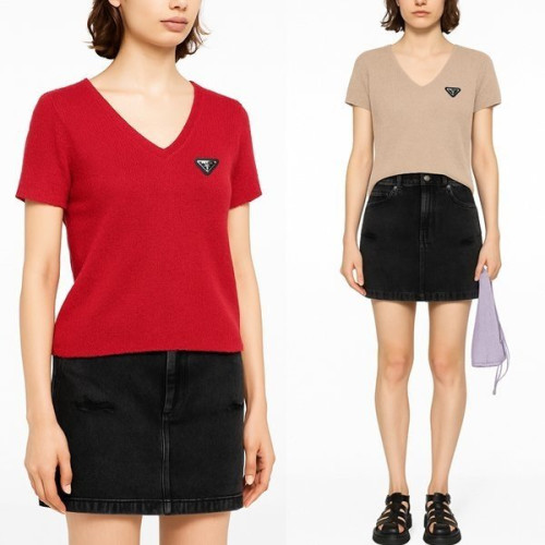 • PRADA 프라다 부클 브이넥 니트반팔