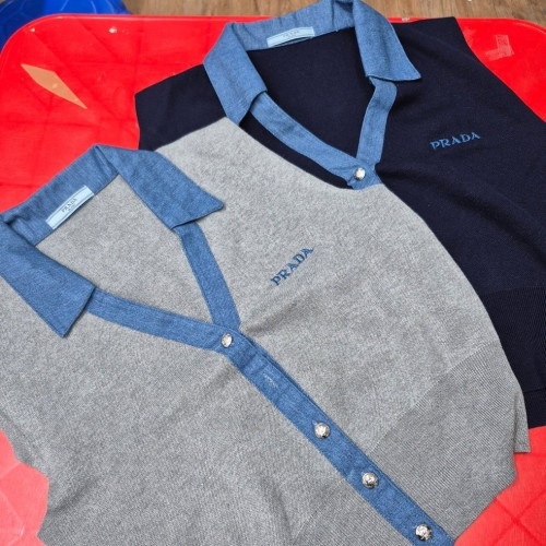 PRADA 프라다 데님 카라니트 조끼